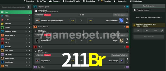 O 211Br oferece uma grande seleção de opções de apostas em e-sports com probabilidades competitivas